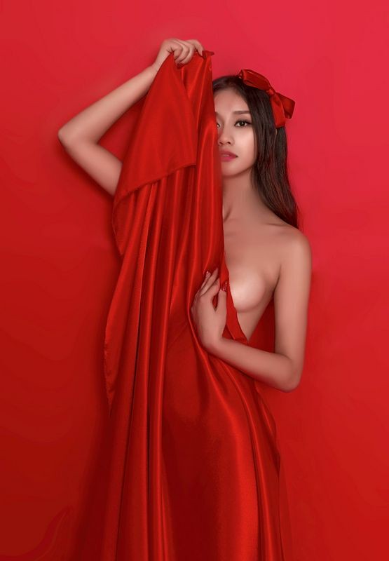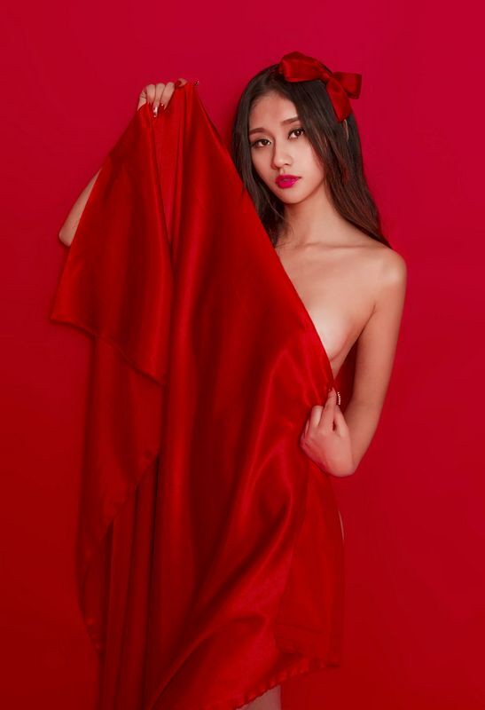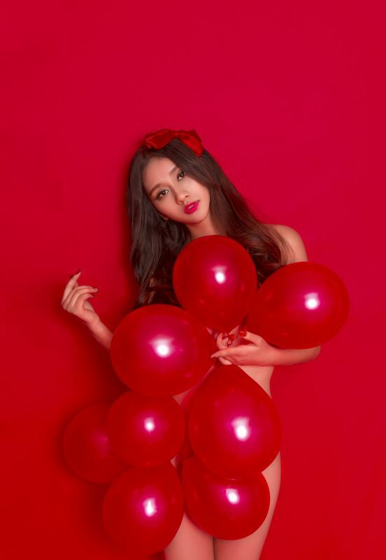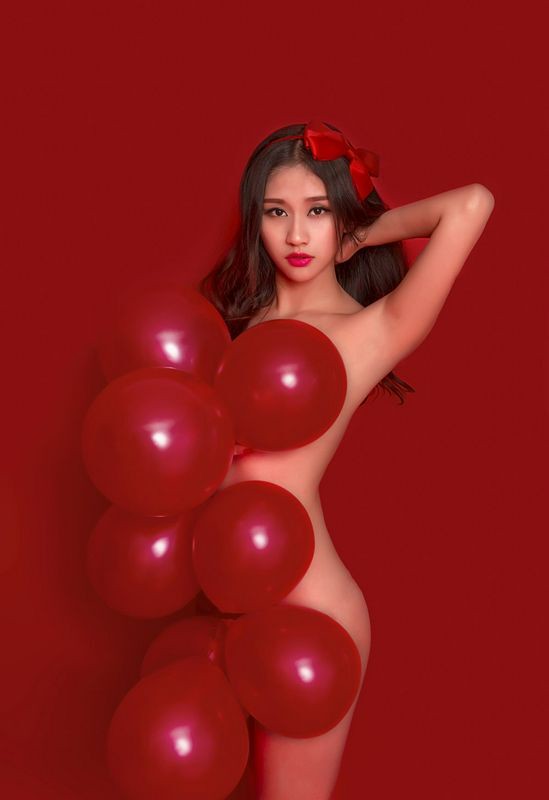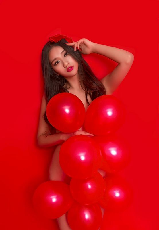 美女红色气球送给你